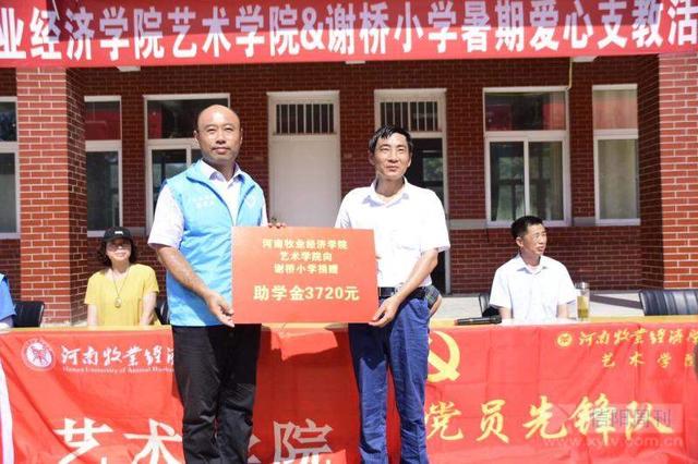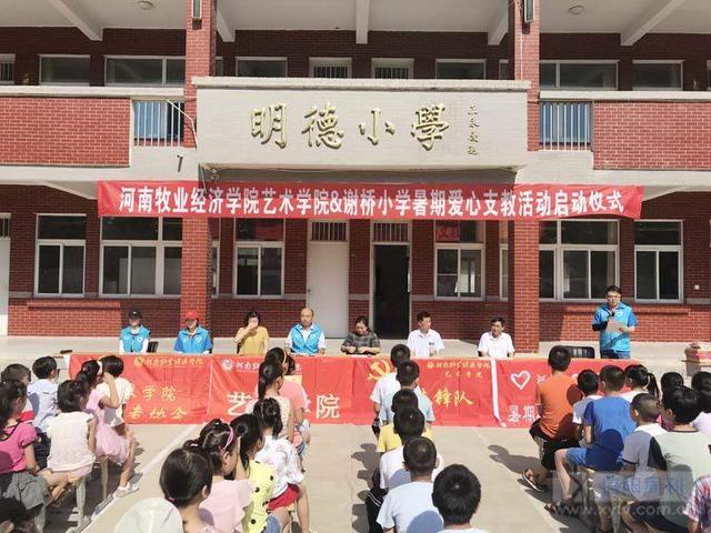 7月18日上午,河南牧业经济学院日日爽夜夜爽“爱,在路上”爱心支教活动启动仪式在李家寨谢桥小学举行。信阳市鸡公山管委会社会发展办公室主任胡春霞、李家寨中心校校长吴光勇,河南牧业经济学院日日爽夜夜爽总支书记王在钦参与了本次的支教活动仪式。