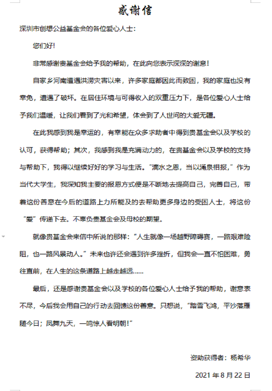 家园有殇爱无疆,洪水无情人有情!感谢深圳市创想公益基金会,让我们共同努力帮助受灾学生们渡过难关。