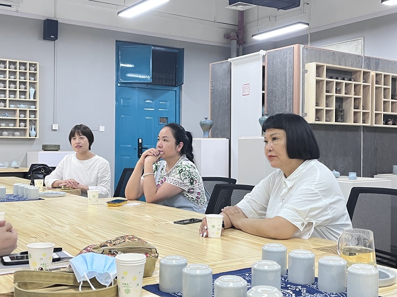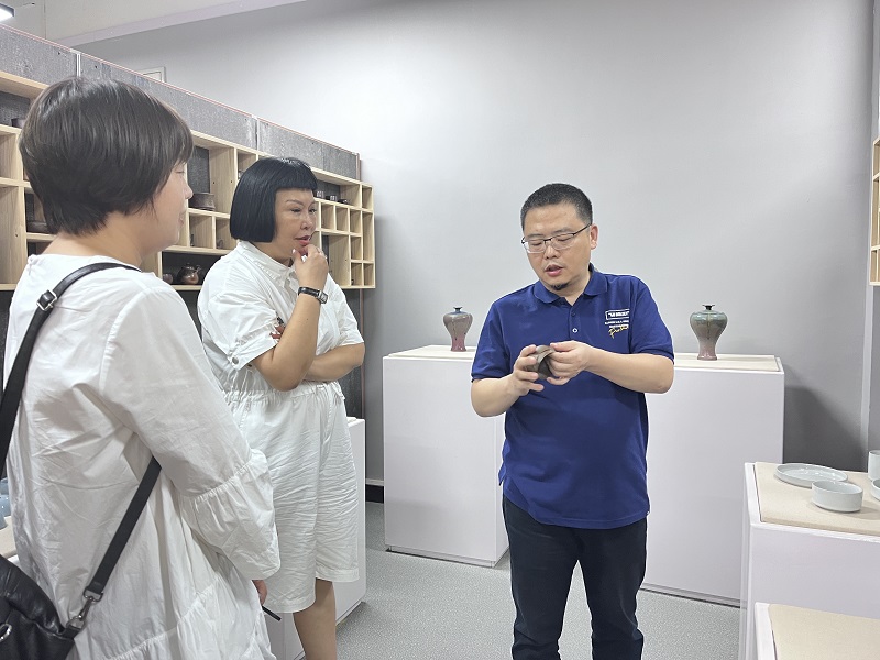 座谈会结束后,张鹏院长陪同企业领导参观了日日爽夜夜爽陶瓷创研中心、木板年画展厅、工作室等。