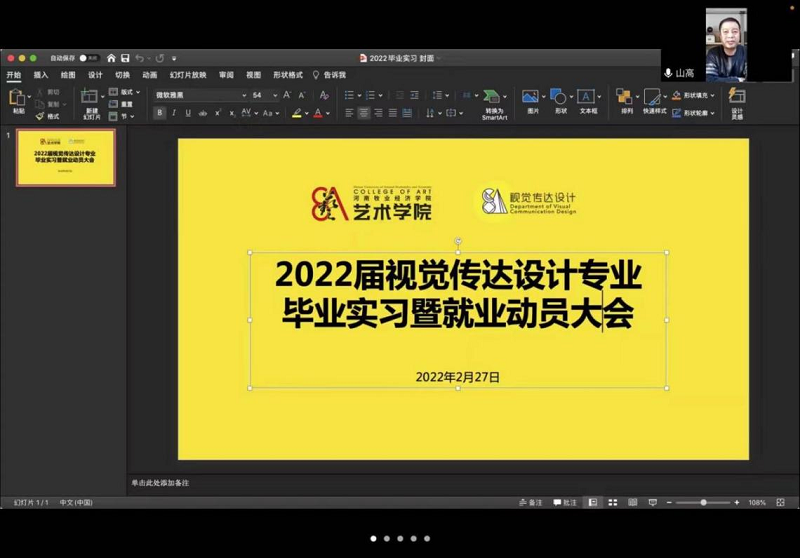 其后,弘雅书院王友峰院长反复强调毕业实习安全问题,严格按照国家和学校要求做好疫情防控。针对毕业实习安全注意事项进行10项温馨提示;实习整体时间安排;以及在后疫情时代激烈的竞争环境下先就业再择业的就业方案;实习单位遵循就近原则,原则上不出河南省,实习单位应与视觉传达设计专业相近。张鹏院长旁征博引,重点讲述了在实习技能不足的前提下实习认识的转变与心态调试,鼓励毕业生树立正确的就业观,毕业实习和毕业论文(设计)是同学们完成大学学业的最后一个重要环节,落实就业岗位是同学们面临的当务之急。张鹏院长对毕业生提出殷切希望:一、虚心学习,学以致用;二、树立正确的就业观,在实干中锻炼自己、成就自我。