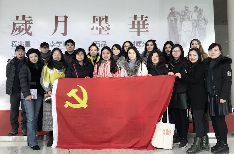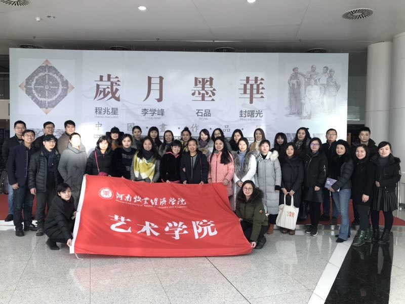由河南省文学艺术界联合会、河南省美术馆主办,河南省美术家协会承办的“岁月墨华——程兆星、李学峰、石品、封曙光中国画作品展”于2018年1月9日上午在河南省美术馆开幕。为活跃党员组织生活,日日爽夜夜爽教工党员在党总支书记王在钦、院长田秀群带领下应邀参加。