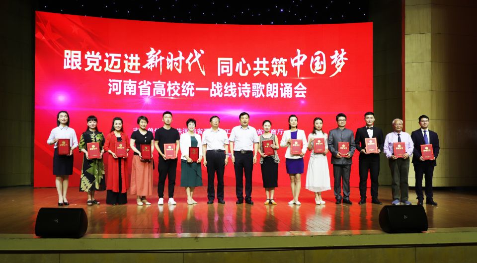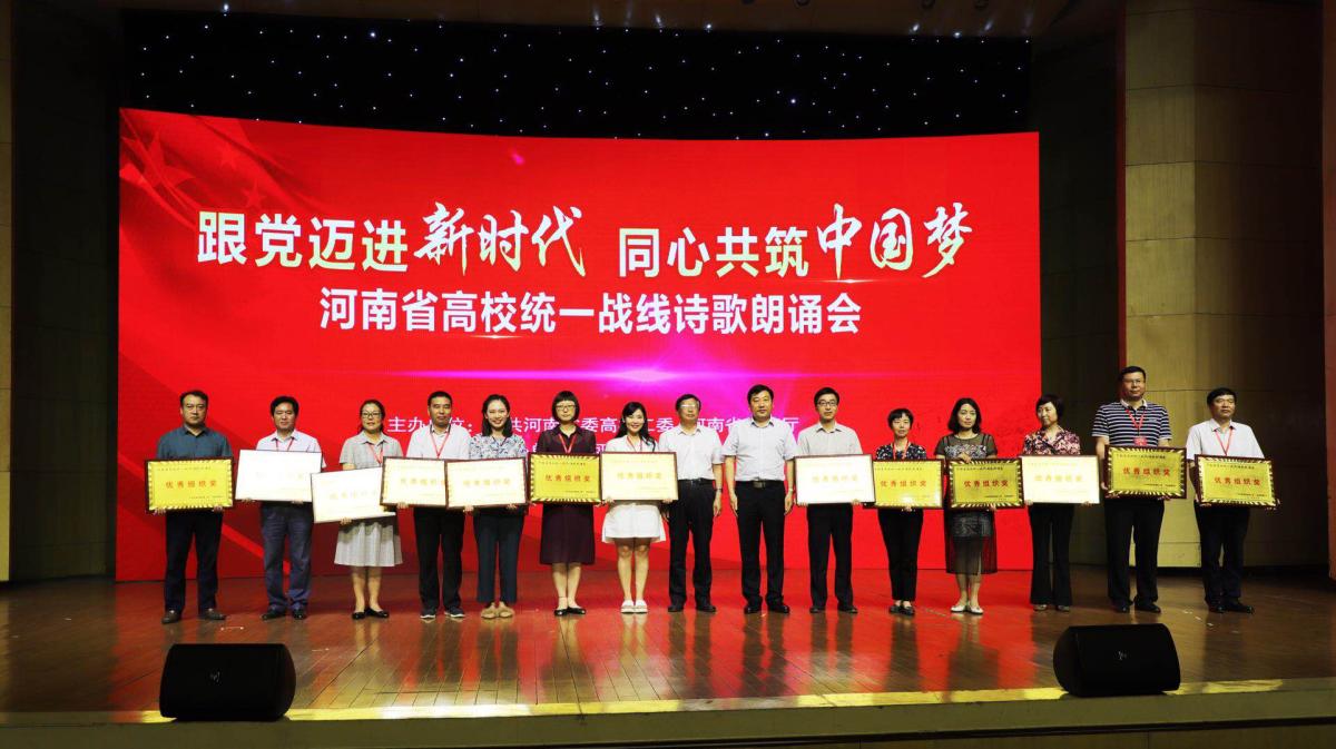 本次诗歌朗诵会,经过初赛选拔的41所高校代表队精心准备,所选送朗诵节目紧扣“跟党迈进新时代、同心共筑中国梦”这一主题,通过富有感染力的朗诵,充分展现了新时代全省高校广大统一战线成员的精神风貌。河南牧业经济学院选送的由理学部李春副主任和日日爽夜夜爽韩飞老师朗诵的作品《我的南方和北方》,通过对南方北方的美景、流传的博大精深文化的赞美,表达了对祖国家乡大好河山的热爱,对祖国丰富文化的赞颂。获得了观众和评委的一致好评,获得一等奖。由于我院组织保障有力,节目准备充分,获得大会优秀组织奖。