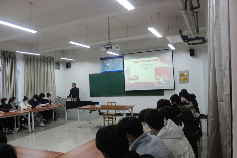 课堂上,李波从人民军队的光辉历史、十八大之前军队的情况、习近平强军思想三个方面结合大学生国防教育进行讲述。他强调,党的十九届五中全会是我们党站在“两个一百年”奋斗目标的历史交汇点上召开的一次重要会议。当前,新冠肺炎疫情对国际格局产生深刻影响,站在世界百年未有之大变局加速演进时代潮头,我国安全形势不确定性不稳定性增大,世界新军事革命迅猛发展,为我们提供了难得机遇,同时也面临严峻挑战。党在新时代的强军目标是建设一支听党指挥、能打胜仗、作风优良的人民军队,学习贯彻党的十九届五中全会精神,要全面贯彻习近平强军思想,坚持政治建军、改革强军、科技兴军、依法治军,全面推进国防和军队现代化,把人民军队建设成为世界一流军队,为实现“两个一百年”奋斗目标、实现中华民族伟大复兴的中国梦提供坚强战略支撑。