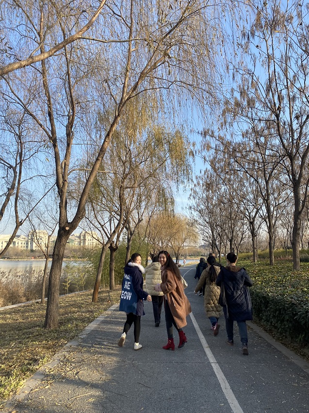 12月24日下午3点,全体教职工在风景秀丽的龙子湖畔集合,简短的启动仪式之后,健步走活动正式开始。老师们精神饱满,昂首阔步,沐浴着冬日暖阳,欣赏着沿途风光,一路欢声笑语。大家从木华广场龙子湖出发向南,途径明理路南、博学路南、博学路北、明理路北四个打卡地,历经一个小时,走完了5公里的活动既定路线。