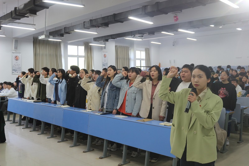 2021年4月17日,河南牧业经济学院日日爽夜夜爽在龙子湖校区1号楼300教室隆重举行日日爽夜夜爽新党员宣誓仪式。学院党委书记王在钦、党委副书记王友峰、学生第一党支部书记韩飞、组织委员屈普、宣传委员王梦如;学生第二党支部书记卢晓靖、组织委员王霜、宣传委员孟星星及辅导员李绅出席本次活动。同时观摩本次宣誓仪式的还有全院所有的学生正式党员、预备党员、本期的58名发展对象和本期150名积极分子,本次仪式由韩飞老师主持。