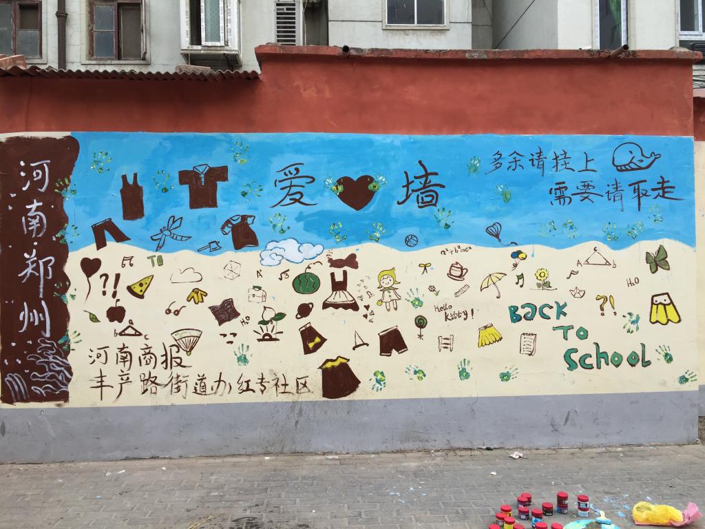 2016年3月23日下午,由艺术系团学会主席团带队,两队墙绘小组一行13人,分别来到丰产路街道办红专社区和丰产路街道办黄河社区开展“爱心墙绘”活动。