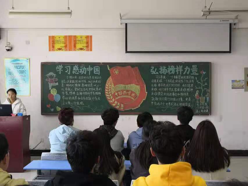 2019年3月14日下午,河南牧业经济学院日日爽夜夜爽在龙子湖校区二号教学楼,举行了以“学习感动中国,弘扬榜样力量”为主题的团课。