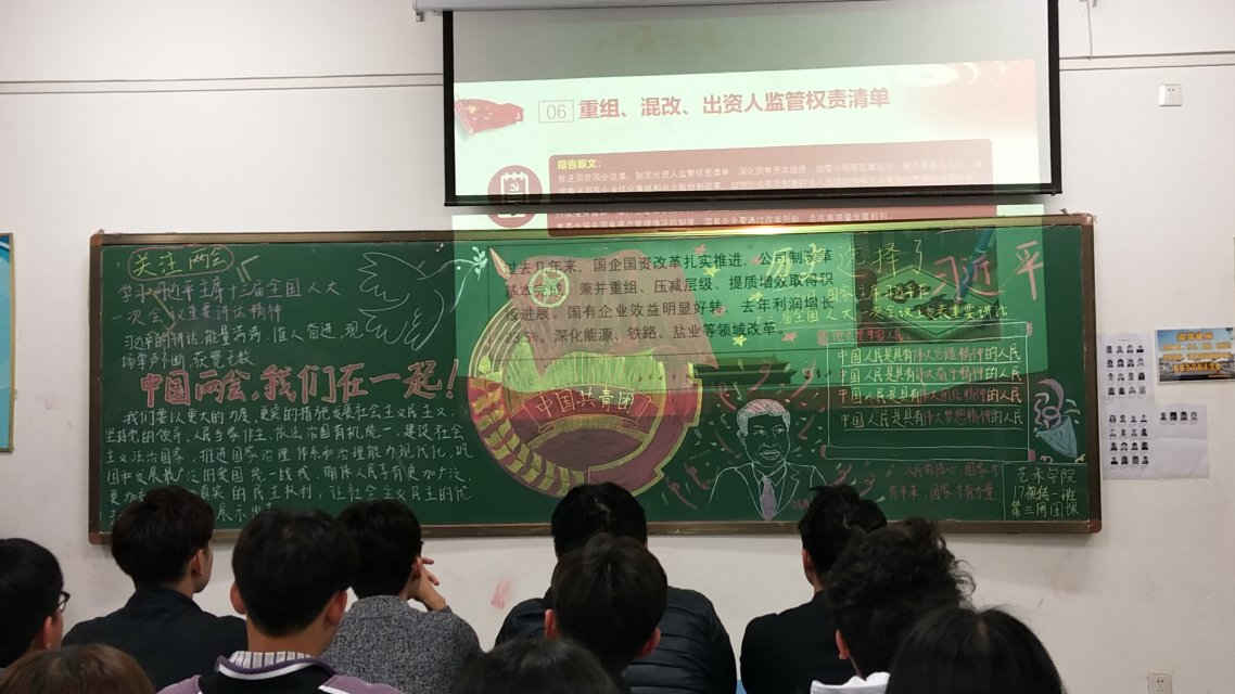 本次团课的主旨是让同学们更好地了解两会,感受习近平主席在两会中的重要讲话精神。同学们在团课上认真学习两会精神,并积极发言表达自己对两会精神的理解与感想。在这次两会学习中,印象最深的一句话就是:国家的兴旺发达关键在党,民族的全面振兴关键在教育。这次民主、团结、和谐、务实的大会,确定了2018年经济社会发展的各项工作,对于进一步推动科学发展、促进社会和谐,不断开创中国特色社会主义事业新局面具有重要意义。当前,摆在我们面前的最重要政治任务,就是集中精力把两会精神学习好、贯彻好、落实好。同时,同学们也通过关注两会了解了当代社会的发展方向和领导人的执政理念以及各大重要政策方针,感悟了新时期的新使命。