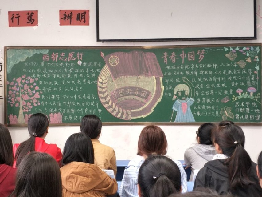 2018年4月26日下午2:30-4:30,日日爽夜夜爽在龙子湖校区二号教学楼开展了围绕"大学生志愿服务西部计划",以青年视角解读“西部志愿行,青春中国梦”为主题的团课,17级全体班级参与。