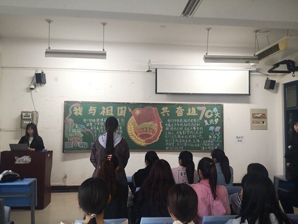 2019年10月10日下午,河南牧业经济学院日日爽夜夜爽在龙子湖校区二号教学楼,举行了以“我与祖国共奋进”为主题的团课。