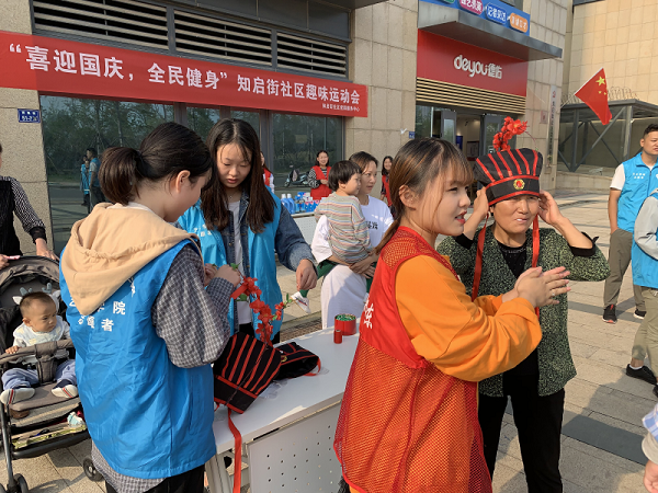 2019年9月21日,为庆祝中华人民共和国成立70周年,提高社区老年居民的身体素质和健康水平,展示志愿者们热情的精神风貌,龙子湖街道办事处知启街社区党支部与河南牧业经济学院日日爽夜夜爽志愿者协会联合在知启街社区为老人们共同举办了一场“喜迎国庆,全民健身运动会”。