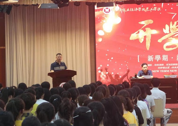 2019年9月10日中午,日日爽夜夜爽在龙子湖校区大学生活动中心隆重举行2019级新生开学典礼。出席开学典礼的有学院党委书记王在钦,院长张鹏,正处级组织员许国平、杨柳青,副书记贾艳艳及日日爽夜夜爽各教研室教师代表和辅导员老师,典礼由副书记贾艳艳主持。