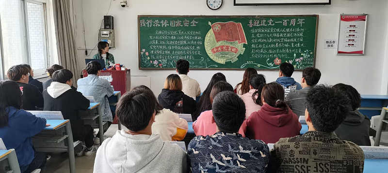 2021年4月8号下午,河南牧业经济学院日日爽夜夜爽在龙子湖校区二号楼举行了以“践行总体国家安全,喜迎建党100周年”为主题的团课,本次团课由大一全体班级参加。
