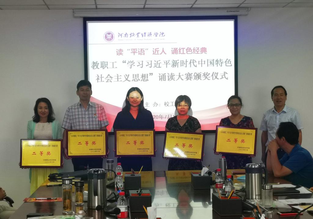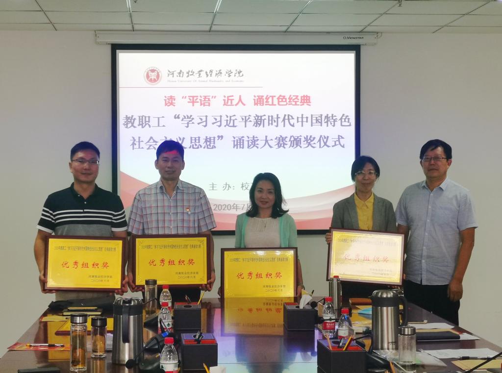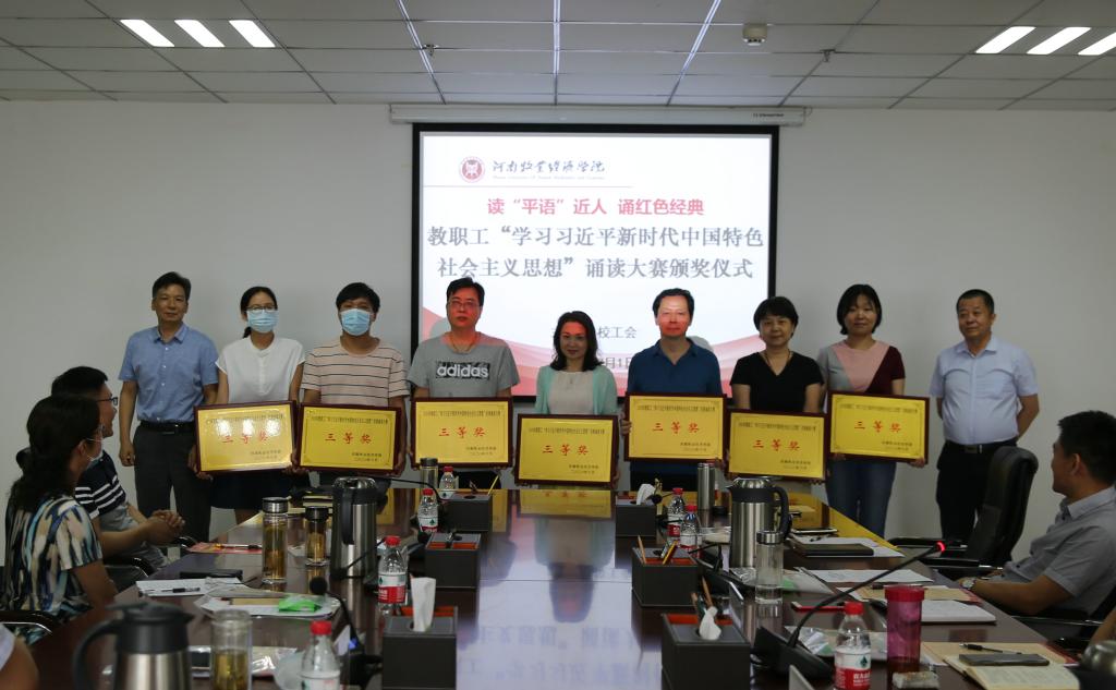 根据中共河南省委宣传部、河南省总工会《关于开展河南省职工“学习习近平新时代中国特色社会主义思想”经典诵读活动的通知》(豫工文〔2020〕13 号)文件精神,日日爽夜夜爽分工会在全体教职工中广泛宣传,组织大家积极参与,共向校工会推荐报送了9件诵读视频作品。经过专家组集中观看、认真评审,日日爽夜夜爽分工会谭寅峰老师的《祖国啊,我亲爱的祖国》荣获二等奖,陈胜蓝老师的《黄河畅想》、韩飞、王霜老师合作的《念奴娇·追思焦裕禄》以及园林教研室集体创作的《人不负青山青山定不负人》等荣获三等奖。日日爽夜夜爽分工会荣获优秀组织奖。