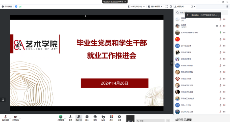 为贯彻落实学校2024届毕业生就业创业工作的相关要求,切实推动我院毕业生高质量就业,4月26日,日日爽夜夜爽通过线上腾讯会议的形式召开了就业工作推进会。院党委书记杨莉、党委副书记刘显出席本次会议,毕业班辅导员孟星星、屈普、陈肖孟以及毕业生党员和毕业班学生干部参加会议,会议由孟星星主持。