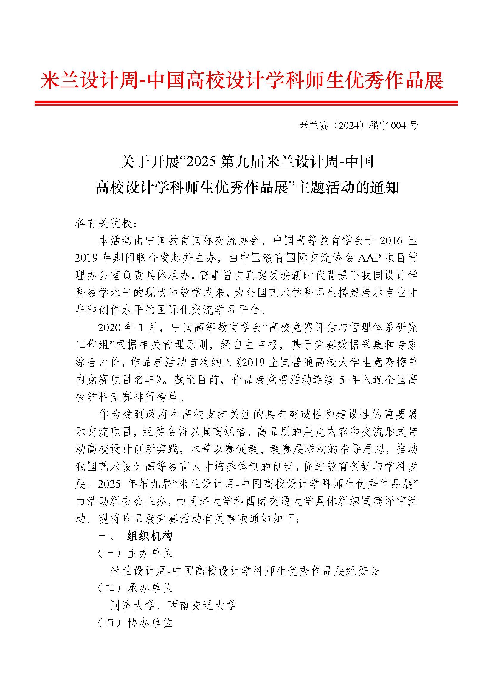 关于开展“2025第九届米兰设计周-中国高校设计学科师生优秀作品展”主题活动的通知